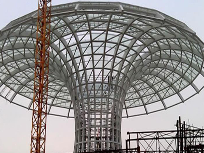 二、球形网架结构因其结构新颖,受力合理,自重轻、用钢量低等优点。如大型体育场馆球形连云港螺栓球网架、公共场馆球形网架、电厂连云港螺栓球网架、水泥工业球形网架、仓储物流球形网架、连云港干煤棚工业球形网架、连云港收费站连云港加油站球形网架、展览中心、影剧院、商场、航站楼、候车厅、工厂连云港车间、仓库、电视塔等球形螺栓球节点网架。国内球形网架结构主要分为:连云港焊接球节点网架及螺栓球节点网架两种。螺栓球节点网架其构件工厂内加工量较大,现场安装便捷,适用于现场工期紧,连云港施工条件、用电量受制约,网架形状复杂、连云港杆件定位困难的异形结构。螺栓球节点球形网架系统基本由连云港杆件、螺栓球、支撑支座等组成。按照节点形式可分为交叉连云港桁架体系、四角锥体系、三角锥体系等。支撑方式多为固定支座支撑。对于大面积、大跨度及有特殊受力或伸缩要求的网架结构可采用橡胶支座、滑移支座、球铰支座等支撑形式,以满足结构自身的受力稳定、均衡,便于内力释放等设计要求。